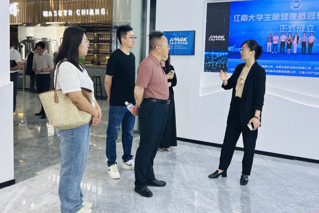 会前,陈雪梅陪同陈兵乐一行参观了大学科技园“江苏省概念验证中心(江南大学生命健康领域)”展厅。