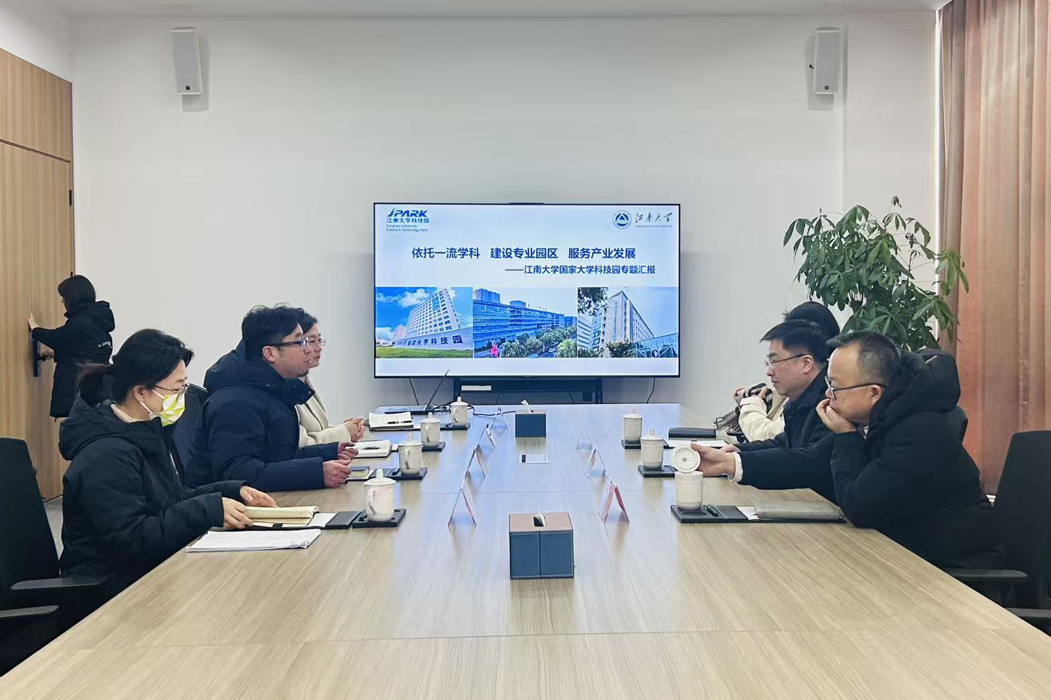 1月21日,江南大学副校长金科赴江南大学国家大学科技园,就园区建设与发展情况进行专题调研指导。资产公司党总支书记王国平、总经理李勤陪同调研。大学科技园总经理李博率经营班子参加座谈。