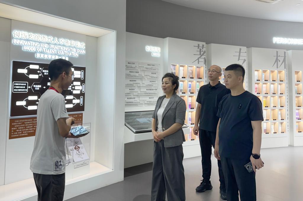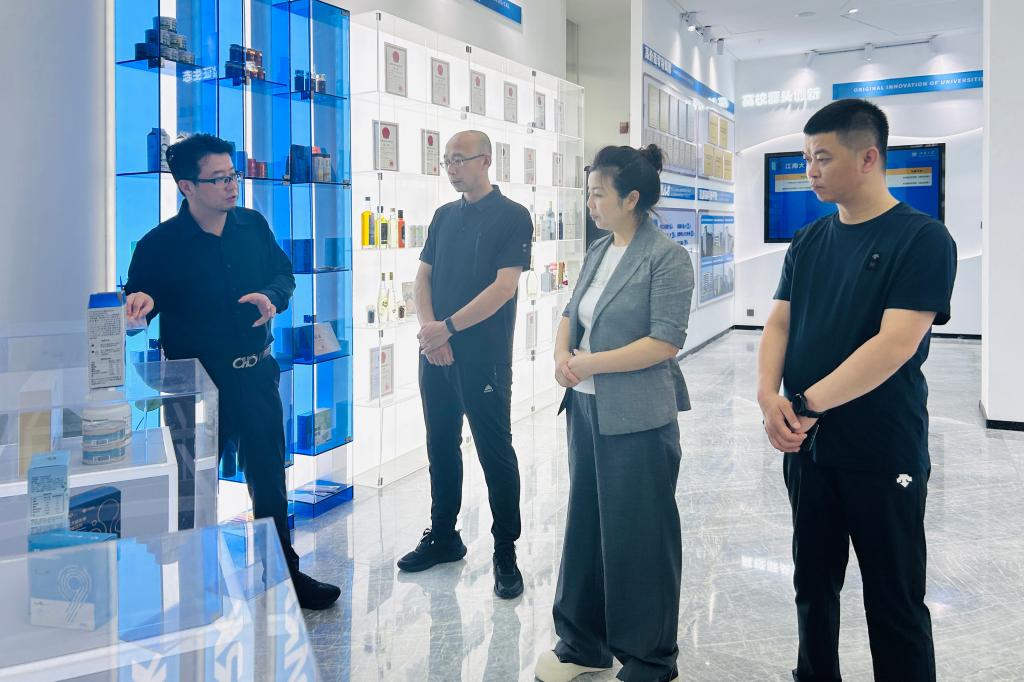 李博陪同王威一行参观了大学科技园“面向未来的产业孵化中心”展厅,并简要介绍了大学科技园的发展历程、运营模式、孵化成效及未来发展规划。李博表示,大学科技园作为市校共建的重要窗口,依托江南大学的一流优势学科,整合各方创新资源,致力于科技成果转化、科技企业孵化和双创人才培育等工作。他还重点介绍了大学科技园携手各方建成了江苏省首批概念验证中心,推动生命健康、合成生物等前沿领域技术成果的落地发展情况。