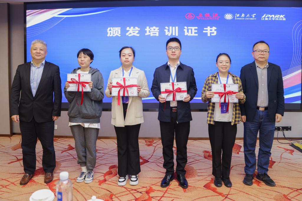 徐岩为学员代表颁发结业证书。通过本次培训,参训学员们在白酒工艺技术、食品质量安全管理及领导力等方面均取得了显著提升。参训学员纷纷表示,此次培训不仅增强了自身的专业素养和综合能力,还为今后的工作提供了宝贵的经验和启示。同时,此次培训也进一步加强了江南大学与五粮液集团的合作关系,为双方未来的深入合作奠定了坚实基础。