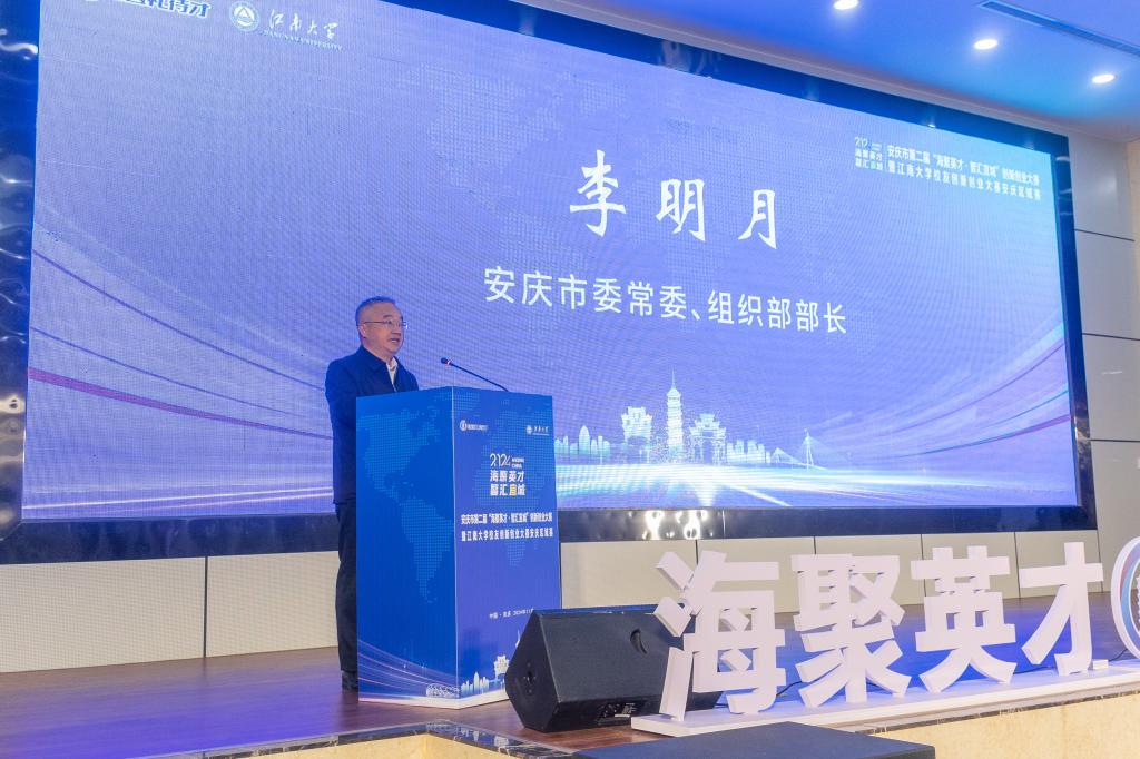 倪松涛对安庆市对江南大学长期以来的支持和关心表达诚挚感谢,他表示,“海聚英才·智汇宜城”创新创业大赛与江南大学校友创新创业大赛首次联合,既能实现项目产业精准匹配,也能促进学校科技成果转化。此次大赛的成功举办,进一步加强了校地深度联动、双创赛事带动,为各类创新创业人才、江南大学校友与安庆市产业融合发展搭建了广阔平台,共同为安庆市生命健康、新能源等细分产业的高速发展贡献力量。