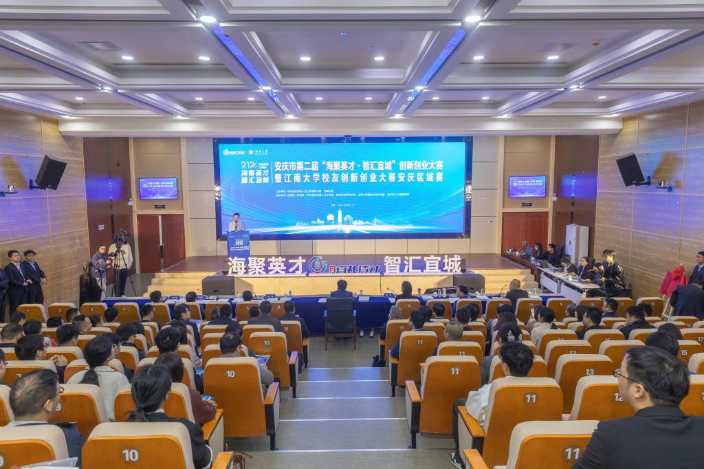 11月12日,第二届“海聚英才·智汇宜城”创新创业大赛暨江南大学校友创新创业大赛安庆区域赛在安徽安庆举办。本次大赛由中共安庆市委人才工作领导小组、江南大学联合举办。安庆市委常委、组织部部长李明月,江南大学党委常委、副校长倪松涛,安庆市委组织部副部长、编办主任、人才工作局局长阮波,江南大学资产管理经营有限公司党总支书记、董事长王国平,安庆市宜秀区委书记郑志,安庆市人才集团党委书记、董事长王中群,江南大学国家大学科技园总经理李博,安庆市委人才工作领导小组成员单位,相关市直单位、各区委组织部人才工作负责人,以及企业家代表、江南大学校友代表、参赛项目代表100余人参加活动。