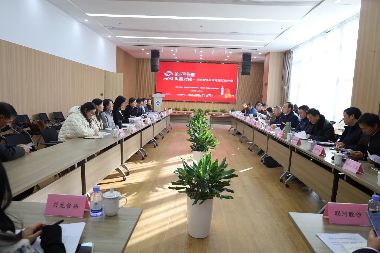 11月28日,安庆市第五期“企业连连看”供需对接·食品企业走进江南大学国家大学科技园活动在大学科技园成功举办。大学科技园董事长李勤、安庆市企业服务中心主任余浩敏、我校食品学院教授团队代表徐勇将、刘晓丽、于沛沛、徐丹以及安庆市食品企业代表们参加座谈。座谈会由安庆市企业服务中心副主任黄一林、大学科技园副总经理陈雪梅主持。