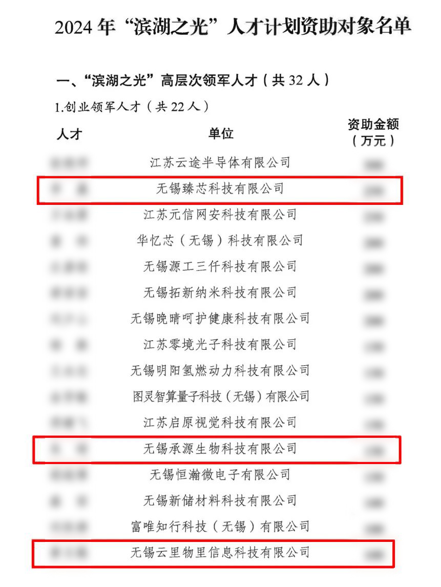 近日,无锡市滨湖区人才办公示了2024年“滨湖之光”人才计划资助对象名单,滨湖区共评选32位,其中大学科技园共有5位创业人才名列其中。