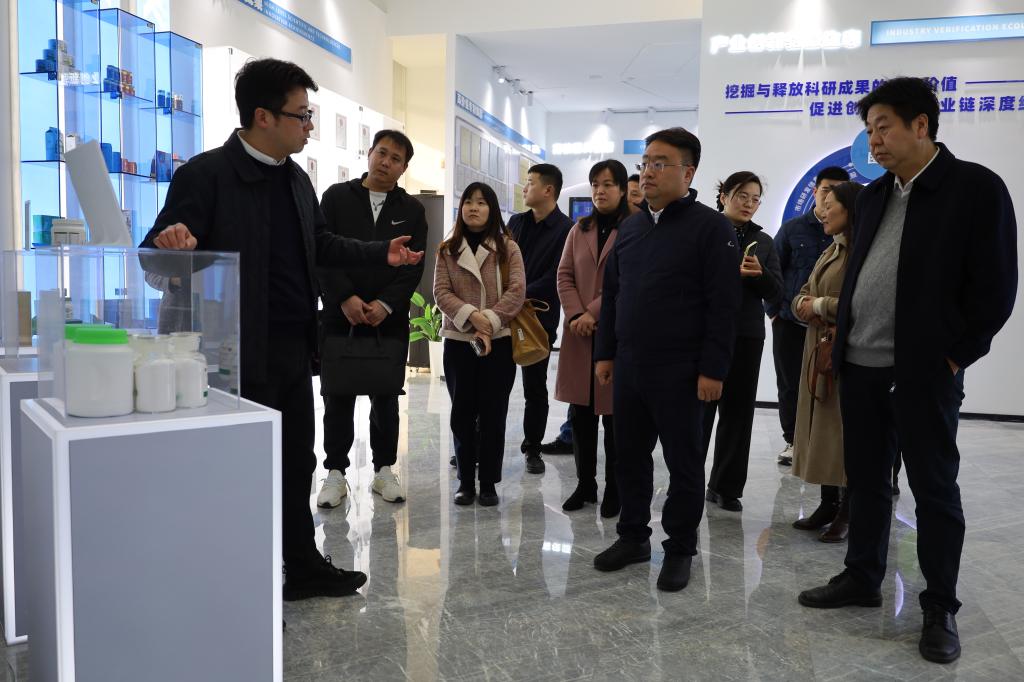 李博陪同潘军华一行参观“面向未来的产业孵化中心”展厅,他简要介绍了大学科技园建设发展、运营模式与孵化成效等方面情况,重点介绍了园区依托江南大学优势学科资源和科技创新成果,携手学校建立首批“江苏省概念验证中心”,开展校友创新创业大赛推动合成生物、功能食品等多个前沿领域技术成果的落地发展,在区域创新发展格局中发挥重要引领作用的工作情况。