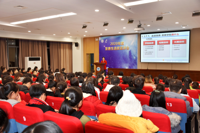 12月6日傍晚,江南大学2020年度至善生选拔宣讲会在图书馆三楼报告厅如期举行。寒风渐起,落叶飘零,寒冷的冬意却阻挡不了同学们的参与热情。400多名大一同学参加宣讲会,至善学院领导和老师以及六位高年级至善生代表为大家做了现场宣讲。