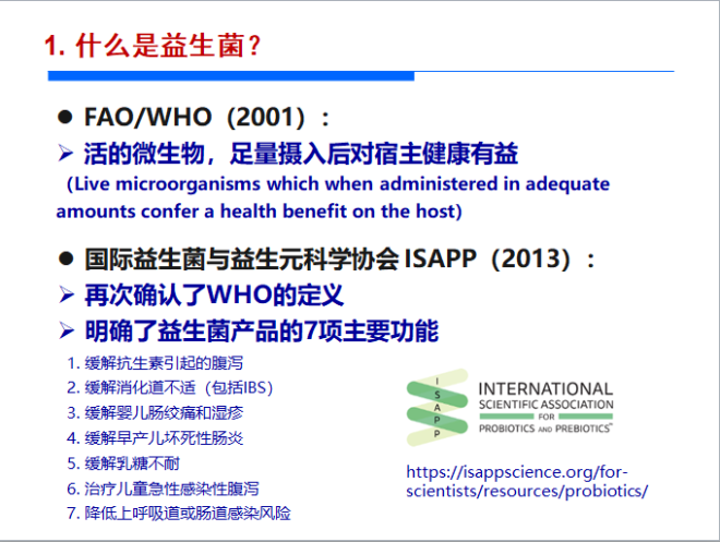 对于益生菌的健康功能和应用情况,陈卫作了重点阐述。益生菌的传统功能主要是缓解一系列肠道不适症状,但随着肠道微生物研究的不断深入,益生菌的功能也得到了进一步的认识和拓展。近年来的研究表明益生菌还对免疫系统、神经系统、人体特殊生境微环境等具有显著的调节作用。