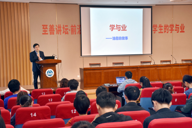 10月14日下午,至善讲坛前沿科技系列讲座《从学科专业的视角谈大学生的学与业》在图书馆305报告厅举行。江南大学食品学院院长刘元法分享了油脂的故事,并结合个人求学科研经历与学生探讨如何加强专业认知,如何做好科研,如何及早设计大学生涯规划并笃志前行。本次讲坛由至善学院副院长单筱婷主持。