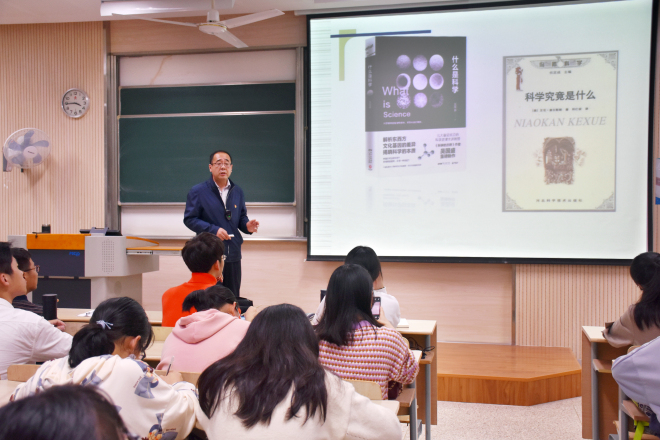 首先,万教授以“五四精神”切入主题向大家阐明“科学”在当今时代发展中的重要作用。科学和技术是增强国力、改善民生的重要推动力,作为国家和民族的守护者和建设者,我们每一位大学生都应当弘扬科学精神,宣传科学思想,传播科学方法,普及科学知识。然后,万教授向大家精辟阐释了“什么是科学”。为了帮助同学们加深理解,他以“什么不是科学”反面论述入手,融入生动的实例,向大家讲解了科学知识、科学思想和科学方法的内涵。随后,万教授具体介绍了科学精神的构成,如理性精神、实证精神等,并阐述了科学精神与其他科学类别之间的关系。最后,万教授倡导大家要继续高扬科学与人文的旗帜,遵循社会规律,实现人生价值,享受真正的幸福与快乐。