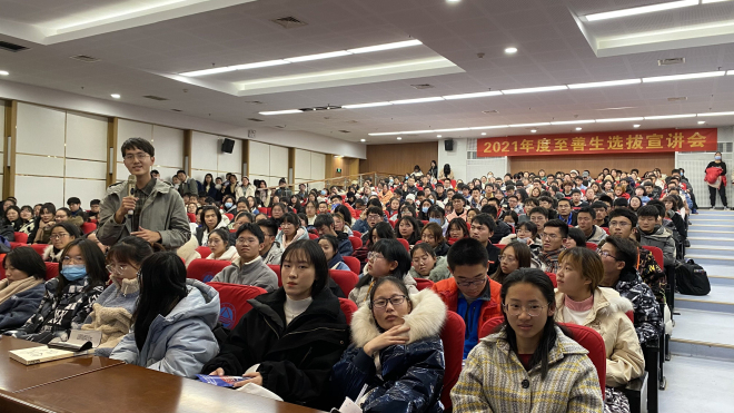 12月18日晚,江南大学2021年度至善生选拔宣讲会于图书馆三楼报告厅如期举行。至善学院领导和教师以及来自16个学院500余名学生参加了会议,常务副院长刘立明教授和四位高年级至善生代表分别从至善发展、至善课程、对外交流、科研创新等方面为大家做了现场宣讲。