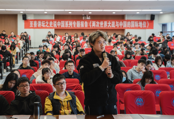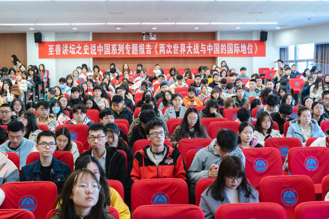 3月22日下午,至善讲坛“史说中国”系列讲座《两次世界大战与中国的国际地位》在图书馆305报告厅如期开展。浙江大学求是特聘教授、蒋介石与中国近代研究中心主任陈红民教授,详细回顾了中国参与两次世界大战的经历,讲述了中国国际地位变化的基本线索,使同学们对于两次世界大战和中国的国际地位之间的关系有更深层次理解。
