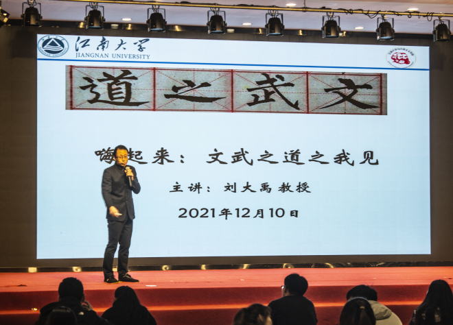 本期嗨课分享主题为《文武之道之我见》,刘大禹从文武之道的起源、历史意义以及当今坚持文武之道的原因三个角度,讲解了“文武之道”的“道”从何而来,因何而行,向何而去。刘大禹以“茶”和“酒”这两个意象,阐释了“文能治国,武能安邦”的治理之道,并结合秦始皇“合并天下,二世而亡”的例子,总结出“平定天下,未必长治久安”的教训。随后,刘大禹赠与大家一句话:“武为基石,文谋发展,文武平衡,方得始终。”最后他给大家示范了一些日常的健身小技巧,帮助我们能够在学习生活中不忘锻炼身体,做到文武合一。