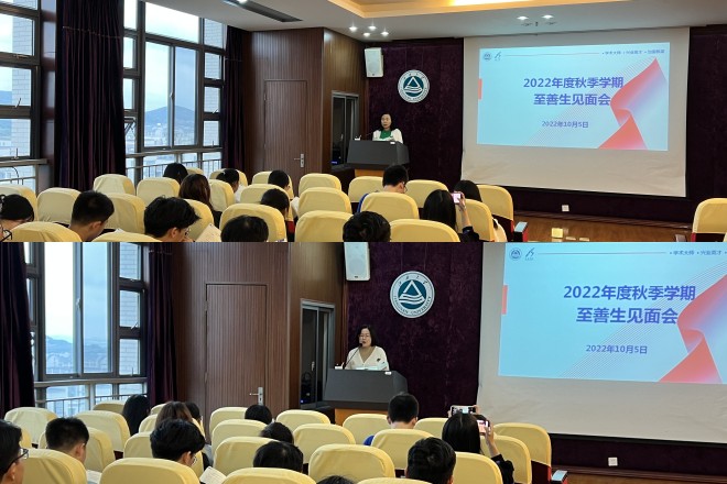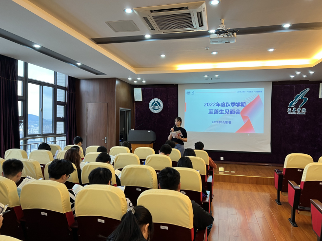 10月5日,至善学院2022年度秋季学期至善生见面会在图书馆819报告厅举行。本学期初,至善学院启动2022年度至善生增补工作,经过个人申请、专业学院推荐、至善学院组织面试等程序,最终来自16个专业学院的31位同学进入至善学院。本次见面会由至善学院吴亚雯主持,至善学院副院长单筱婷、管理考核负责教师李洪、教务秘书张心翠及2022年度全体至善增补生共同参加此次见面会。