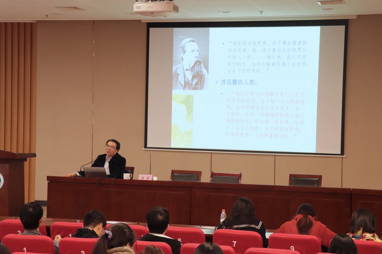 杨晖在本次讲座中通过展示丰富案例和详细解读文学与生态批评的内涵,帮助同学们更加深刻地体会到珍惜和保护生态环境的重要性,体悟到善待生命、重视自然是我们每个人的责任。