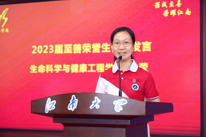 6月15日下午,江南大学2023届至善荣誉生结业典礼在图书馆五楼报告厅隆重举行。中国工程院院士、江南大学校长陈卫,江南大学副校长堵国成,至善学院院长刘立明,教务处处长李兆丰,党委学生工作部部长周伟涛,校团委书记魏珍吉,至善学院特聘指导教师、至善任课教师代表以及全体2023届至善荣誉生共同参加典礼。