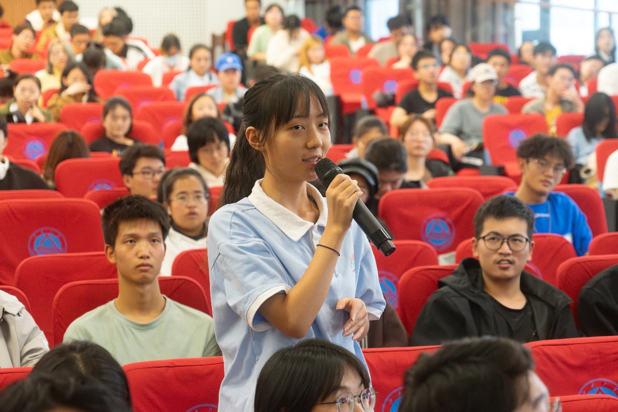 随后,他详细介绍了刀鱼的生长繁殖特性。刀鲚在淡水里产卵,并在饵料丰富的海洋里成长,因此对生长环境的要求极高,这也使得人工养殖技术难度加大。针对这一难题,徐钢春引入了纳苗蓄养的创新方法,这让同学们对开口饵料等技术有了更加深入的了解。在讲座过程中,徐钢春通过大量的图片和视频资料,生动展示了刀鲚的生长环境和养殖过程。他的讲解风格幽默风趣,将刀鲚的养殖过程形象地比喻为“追鱼”的过程,让同学们在轻松愉悦的氛围中收获了知识。从2003年到2009年的六年人工受精探索之路,再到崇明岛到安庆三年蹲点的日日夜夜,直到2017年技术最终成熟,这不仅展现出研究人员数十年如一日的不懈投入,也激励着同学们坚守理想、保持初心。徐钢春强调,实验过程中不论是工业还是农业,都有可能遭遇失败。如果因为害怕失败而不敢尝试,那绝对不是一个科技工作者的正确态度。回顾自己过去数十年的科研之路,徐钢春坦言其中有迷惘也有希望,而他总结收获的一句话是:“要敢于挑战、勇于挑战、善于挑战。”