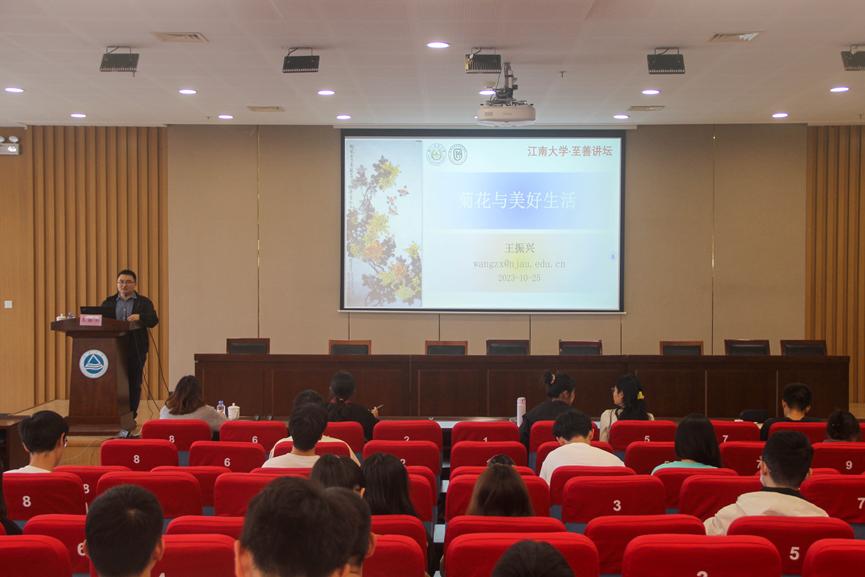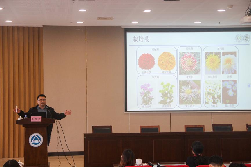 10月25日下午,至善讲坛前沿科技系列讲座《菊花与美好生活》在图书馆305报告厅开展。南京农业大学园艺学院教授、博士生导师、国家级青年人才项目获得者、中国农学会遗传资源分会第七届委员会委员王振兴系统并详细地为大家介绍了菊花的多方面知识,引领大家一同探索菊花的奥秘。