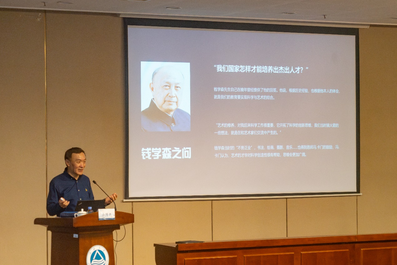 讲座伊始,余隋怀向在场的同学们抛出了两个问题:如何培养杰出人才?为什么我们要去博物馆?在人工智能快速发展的时代背景下,他强调了思辨力、创造力、决策力、人文素养和道德价值观的重要性,认为这是人类战胜科技的唯一出路。他鼓励大家唤醒古老中国蕴含的能量,将文化渗透到科技创新发展中,以让技术更好地为人类服务,实现中华民族的伟大复兴。余隋怀强调,要实现科学与艺术的结合,离不开中国古人的智慧、设计和创新文化。