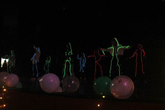 扶鼎而聚,歌之颂之。至善2301班带来的舞蹈朗诵《如愿》向大家娓娓道来理想之诗,传达了时光不负有心人,青云之志皆如愿的美好祝福;校艺术团声乐部倾情演唱《勇气》,悠扬歌声撒播着勇气、热爱与希望;何言黑夜无烛照,声动光转献一舞,学生会的荧光舞《舞蹈疯暴》于黑暗中闪烁,扭动的多彩光芒让观众感受到无限的张扬与活力;学生会成员张佳乐带来的原创歌曲《Imagination》用词曲表达了自己的态度与主张,带领观众遨游于想象的世界,共同感受爱与星光。