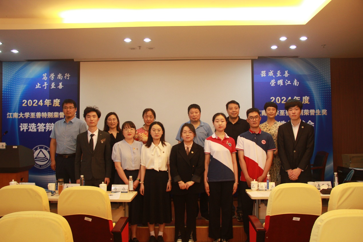 答辩会上候选人通过PPT展示了各自在专业学习、学术科研、创新创业、社会服务等方面的成绩与收获,也讲述了自己与至善结缘、在至善成长的生动故事。他们中有披荆斩棘带领团队不断创新,荣获国家国际各大比赛名次的竞赛达人生物工程学院的钟泽;有投身于临床医学,参加“生命健康”志愿服务近1000小时,受益人超10000人的奉献者医学院的李艳婷;有连年获得国家奖学金,推免综合成绩、综测测评、至善年度考核第一的勤学者人工智能与计算机学院的张俊杰;有刮摩淬励,潜心投身实验室,发表了一篇核心论文,申请了一项发明专利,并于企业合作解决生产问题的科研人化学与材料工程学院的姜雨;有连续三年保持专业GPA第一,综测班级第一,上求下索虚心致学的奋进者食品学院的李晟阳;有主持过国家级大项目“基于多局域模响应的多频带太赫兹超材料吸收器研究”的攀登者理学院的林鸿燕;有情系古籍,参与全国教育科学“十四五”规划项目,江苏省社科基金重点项目等古籍文献研究项目5项的文化传承者人文学院的欣城;有立志科创,获中国国际互联网+大学生创新创业大赛金奖的实践者环境与生态学院的周茹;有以集体为阵地,兼任就业联系员、学业辅导员、纪检委员等职位的引领者人工智能与计算机学院的沈建露;有在江苏省“三下乡”实践活动获先进个人,事迹被光明日报等多家媒体报道的榜样青年物联网工程学院的李琨莹……他们用四年的大学经历完成了对阶段梦想的追求,让心中的至善种子一路发芽、成长,彰显了至善生们的责任与担当。