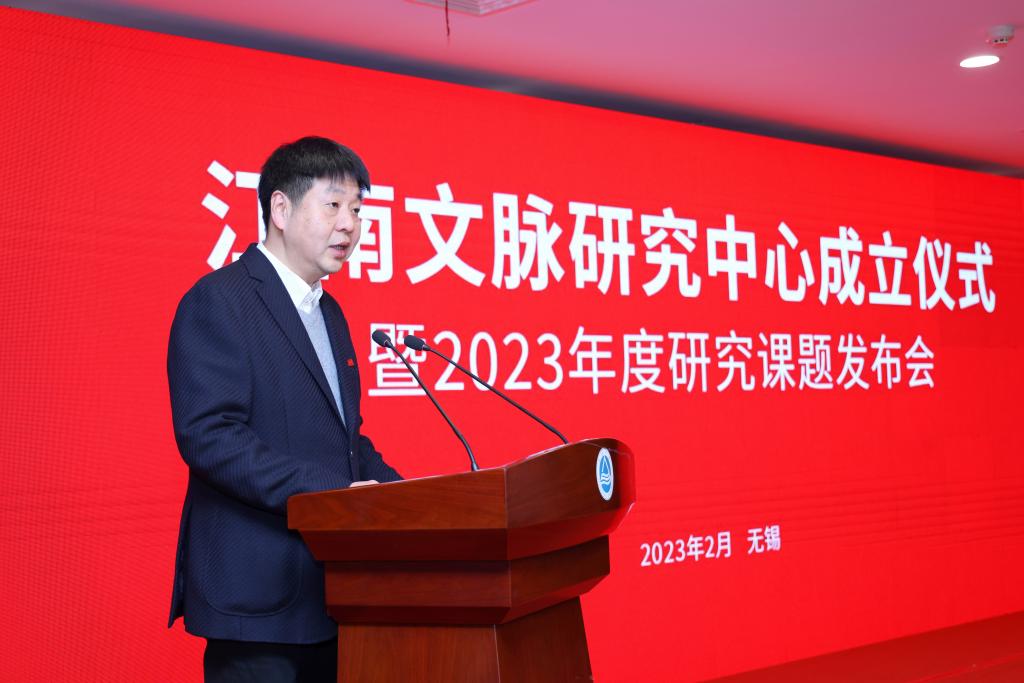 王巍在讲话中指出,近年来中华历史文明和传统文化掀起研究的高潮,地处长三角地区以及环太湖流域的无锡有着深厚的江南文化积淀。他认为,江南文脉研究中心作为少有的实体性研究机构,它的成立是一项具有深远意义的举措,为持续开展江南文化研究,推动文化精神的创造性转化和创新性发展,搭建了坚实的平台。