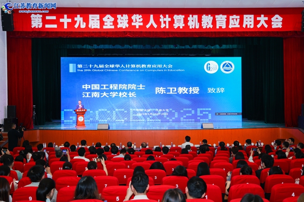 【江苏教育新闻网5月28日】5月26日,第29届全球华人计算机教育应用大会在江南大学开幕,来自中国、新加坡、越南等9个国家和地区的500多名专家学者参会。大会开幕全程采用双会场模式同步进行,主会场设于江南大学,分会场设于香港理工大学,两地联动打造跨区域学术盛会。