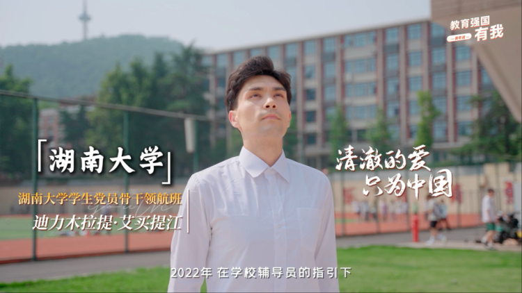 曾经携笔从戎、投身军旅的湖南大学学生党员骨干“领航班”学员、大二学生迪力木拉提·艾买提江说:“教育强国的号角已然吹响,我们唯有以‘清澈’之心守初心,以‘向上’之态担使命,让青春在强国建设的火热实践中绽放最亮丽的色彩。”