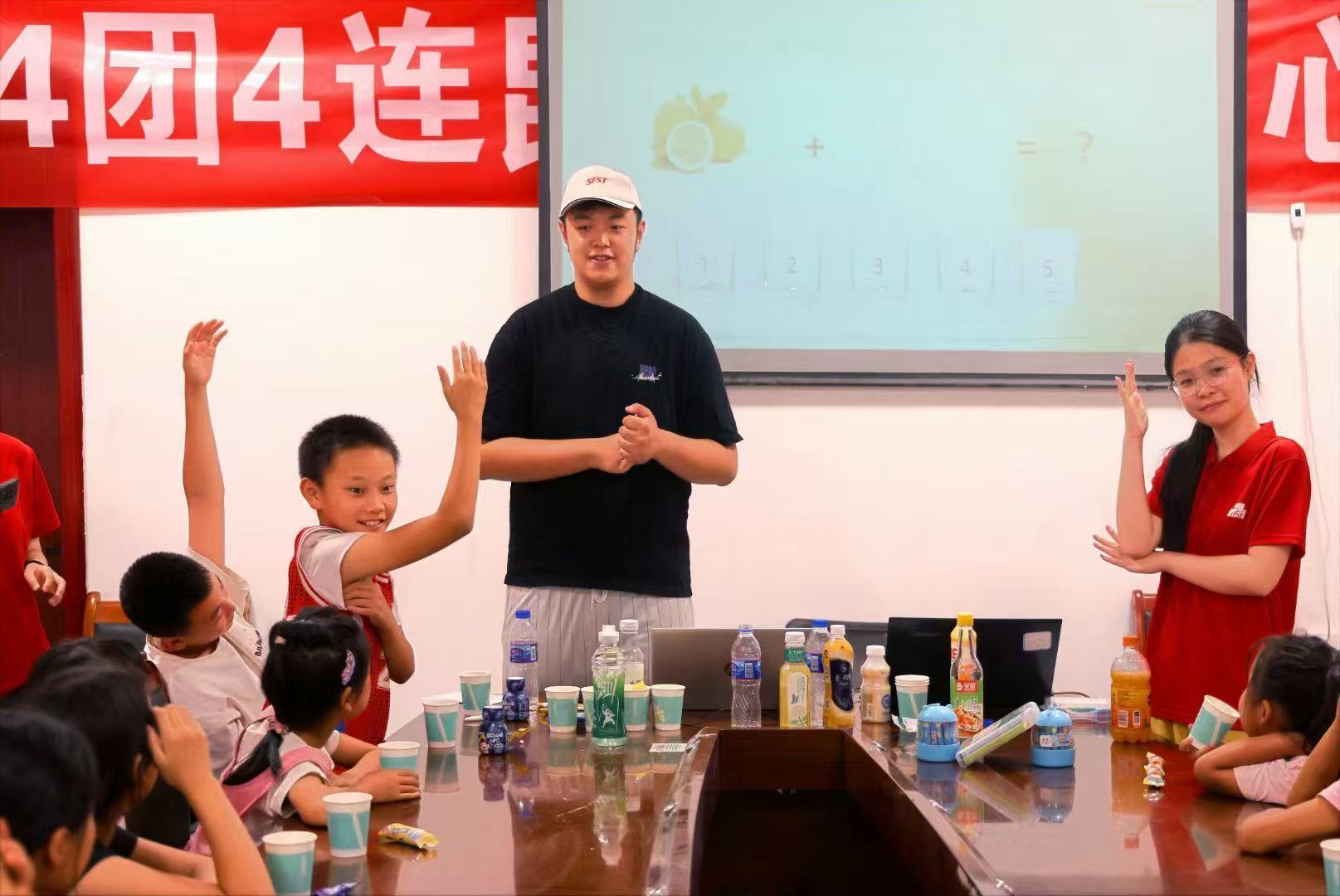 “小朋友们,你们知道一瓶可乐里有多少克糖吗?”7月15日,在四连活动室里,实践队员们开展“七彩假期 食育童行”食育课,“饮料成分放大镜”环节,团队成员为小朋友们揭开了饮料背后隐藏的健康秘密,引发阵阵惊呼。