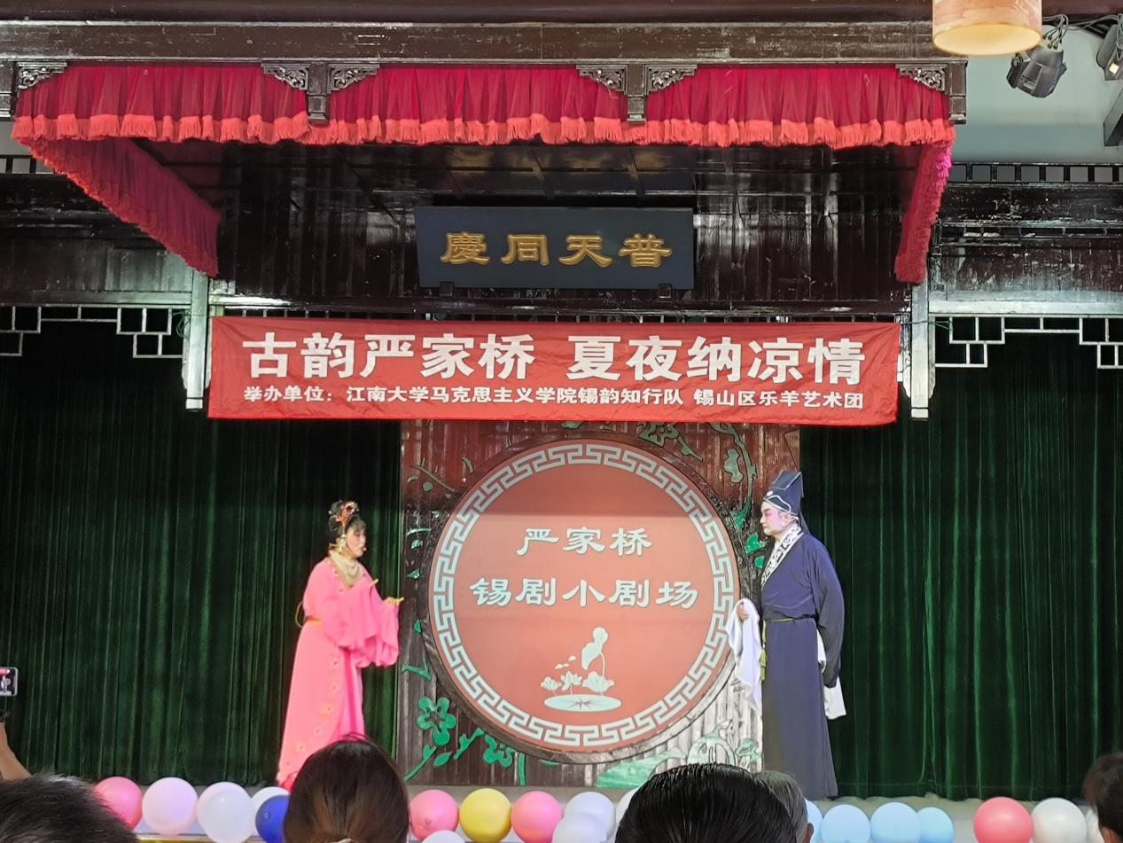 一场村民们喜闻乐见的纳凉晚会,不仅能够丰富基层群众的文化生活,更能够营造邻里之间和睦的氛围。团队联合锡山区乐羊艺术团在锡剧小剧场举办了一场名为“古韵严家桥 夏夜纳凉情”的纳凉晚会,为“锡剧之乡”送上了一场融合非遗韵味与青春活力的文化盛宴。