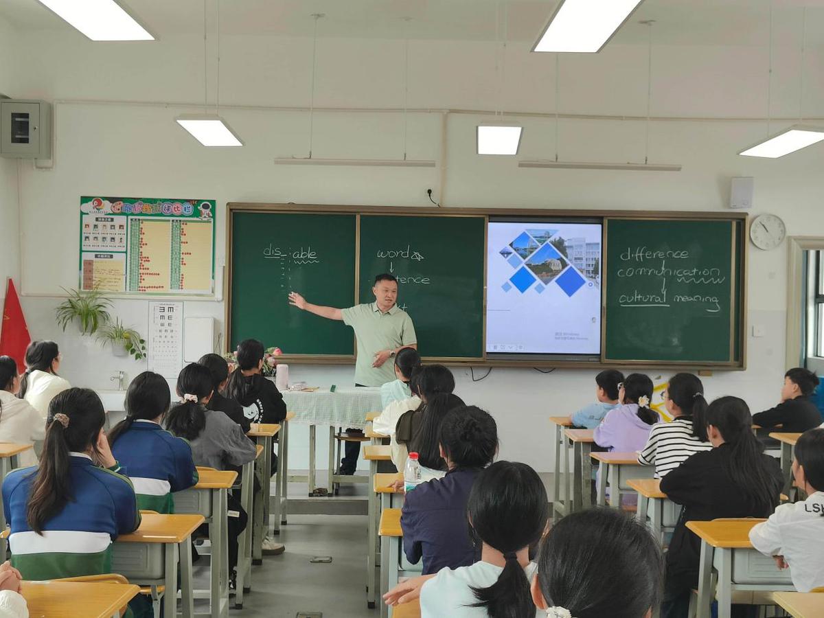 外国语学院副院长杨勇、院长助理李文走进云南保山瓦渡乡中心学校和砚山思源实验学校,为近200名师生开展“英语:连接世界的桥梁”主题授课。杨勇老师以趣味游戏激发学习兴趣,结合“丝绸之路”与中国文化词汇,引导学生理解语言的文化传播使命;李文老师聚焦英语学习技巧,传授记忆方法并强调积累的重要性,他激励大家:“要保持对知识的求知欲,勇敢面对学习中的每一个挑战,才能在语言领域找到自己的独特价值。”