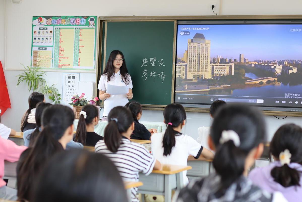 “译路生花”实践团成员则结合乡村学生认知特点与成长需求,打造了覆盖语言学习、文化认知、素质拓展的立体化课程体系,让每一堂课都成为知识传递与视野拓展的窗口。