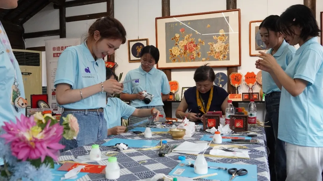 【团学苏刊8月6日】“我相信脚下沾有多少泥土,心中就沉淀多少真情。”江南大学数字科技与创意设计学院“手指上的中国”江阴非遗传承实践团队长刘津彤在回答为什么参加社会实践活动时说道。7月中旬,这支充满活力的实践团队走进江阴青阳镇文化体验中心,用青春力量开启非遗传承与儿童美育的双向奔赴。