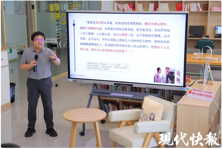 【现代快报+9月22日】我们为什么要阅读文学经典?面对古今中外那么多文学经典,该如何选择?9月21日上午,2025钟书领读·阅读名家走进钟书房系列活动走进无锡惠山经开区(长安街道)惠城三社区钟书房,江南大学中文系主任陈佳冀以《阅读现代文学经典》为题,与市民读者共读经典,感受文学的力量。