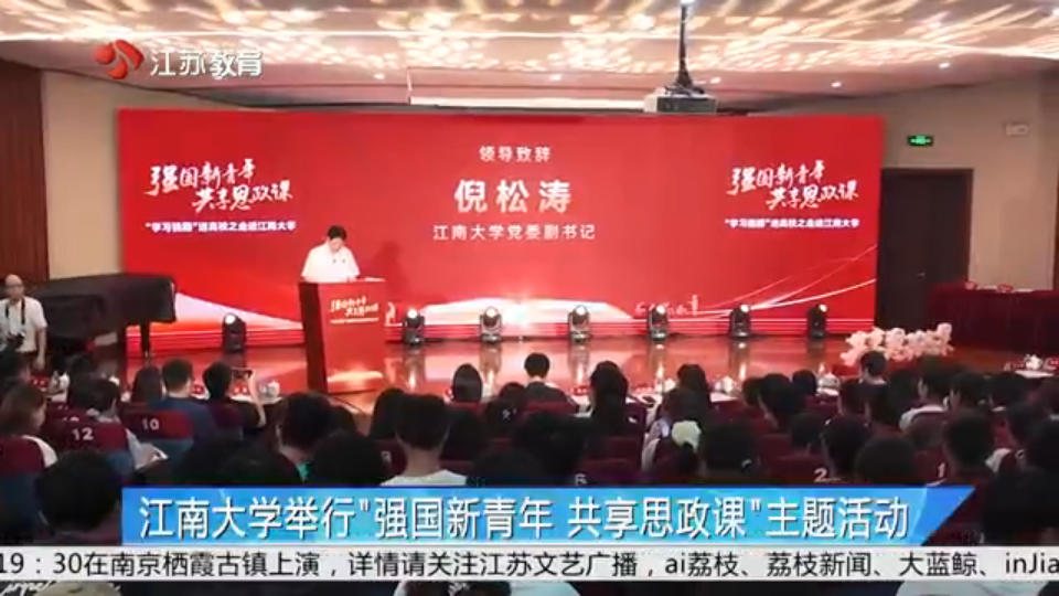 【江苏教育频道9月25日】9月24日下午,江南大学举行“强国新青年 共享思政课”主题活动。活动现场,来自太湖湾高校媒体融合共享联盟五所学校的六位师生,结合各自的科研方向、学习感悟,用故事讲活思政,从不同角度诠释“青春铸魂·专业报国”之内涵,江南大学食品学院教授王刚以