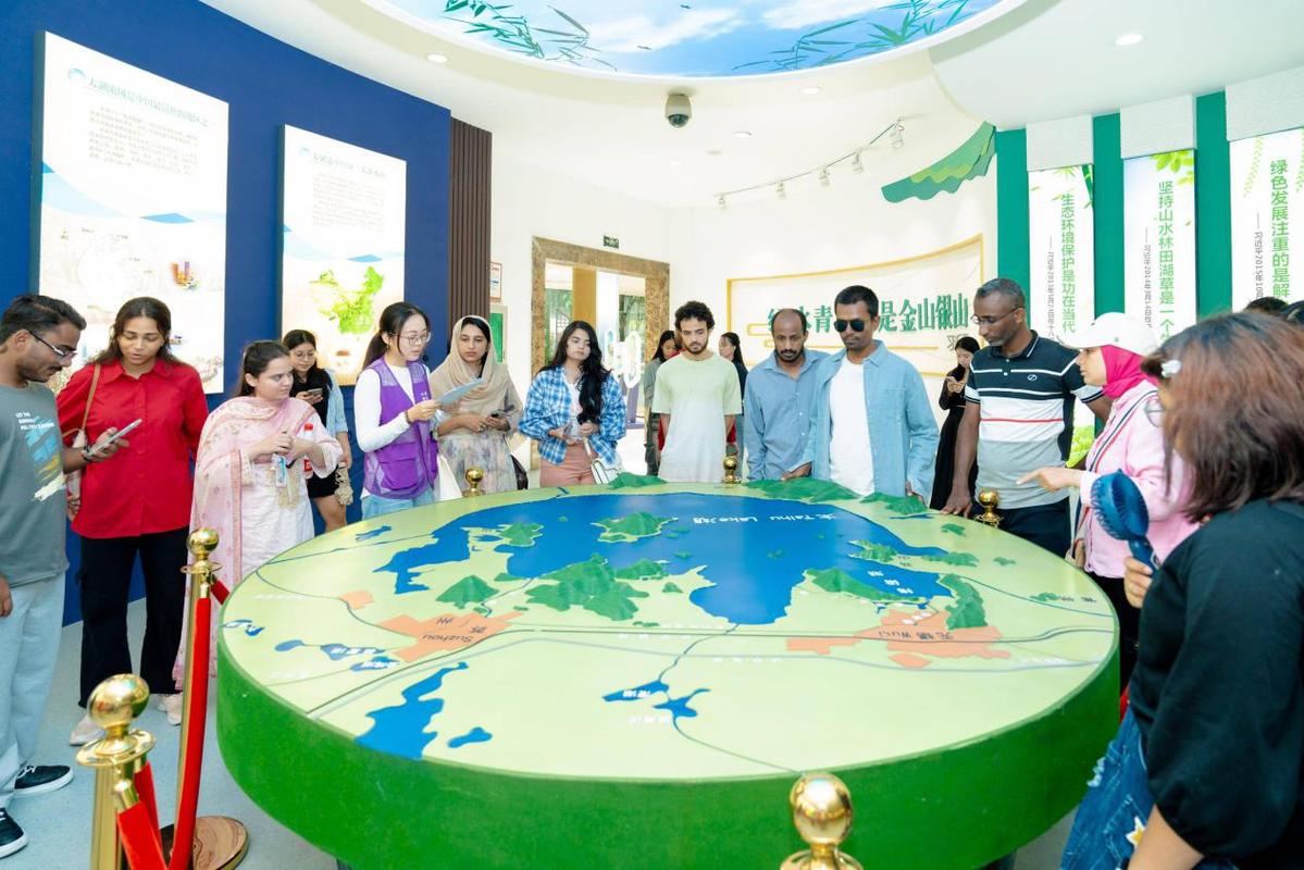 “悦读无锡”是2025 “悦读江苏”系列活动的重要一站,以 “一卷知水韵,百行阅锡城” 为核心主题,延续 “阅读+行走” 的品牌特色。活动伊始,学子们通过《水脉锡城》主题讲座,追溯无锡从运河时代到太湖时代的千年文脉;再走进中国民族工商业博物馆,探寻 “依水兴商” 的工商传奇;随后深入生态蠡湖、科技治太现场,见证无锡水生态保护的实践成果。此外,江南大学还联合无锡市水利局共建 “来华留学生中国国情教育基地”,通过专题讲解、实地参访,让留学生在 “知水、懂水、爱水” 中读懂无锡的生态智慧与发展活力。江苏大学俄罗斯籍留学生安喜看着眼前的青山绿水,连连拍照,“无锡给我留下了很深的印象,整座城市与水相邻,这里的人们为保护水做了很多努力,它有着江南独特的韵味。”安喜说道。