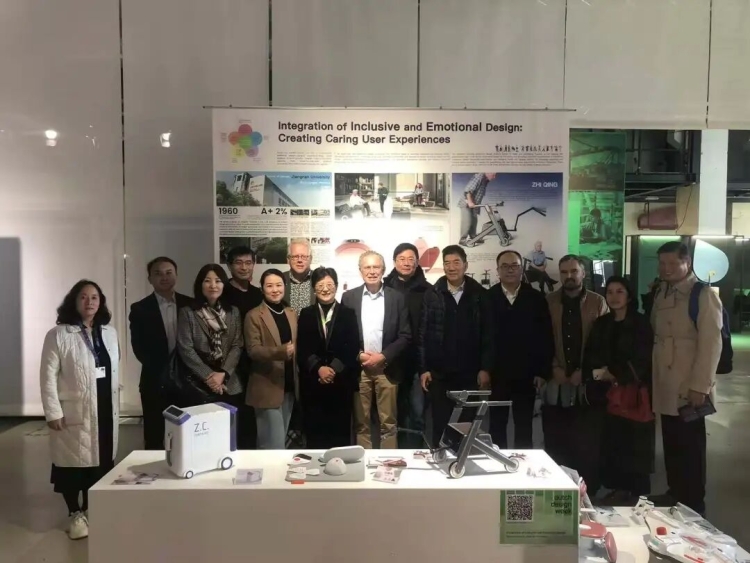 此次江南大学设计学院的参展主题为“包容性设计与情感设计的融合-打造关怀用户体验”,精心挑选了健康福祉方向的代表作前来参展,包括为老年工作者设计的办公产品、智能机械臂助行器、兼具智能陪伴与紧急救助功能的轮椅、适老化的认知训练产品、失能老人的助浴产品、以及办公室健身交互产品等等。
