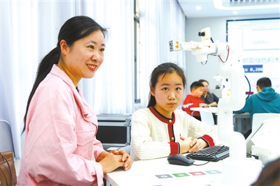 【中国教育新闻网4月8日】4月2日,江苏省无锡市中小学生在家长陪同下走进江南大学人工智能与计算机学院,体验AI科普课程,与机器人互动。