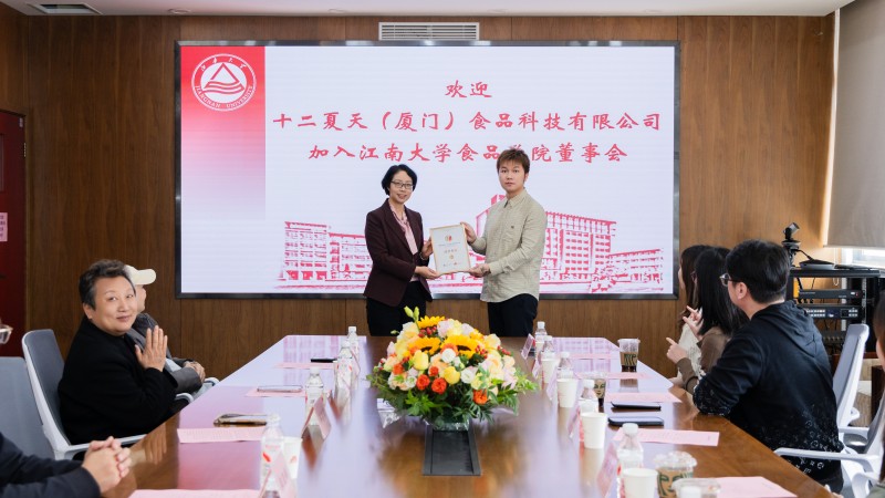 江南大学授予十二夏天“江南大学食品学院董事会”牌匾