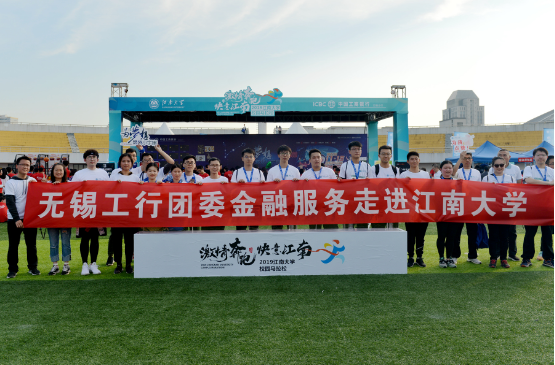 作为此次“江南校马”的独家赞助单位,工商银行无锡分行为保障活动成功举办做足了精心的准备:工行咨询区的互联网金融粉丝节活动精彩纷呈,工作人员全程热情服务,同学们纷纷拿出手机体验“一元购”“扫码立减”等活动,现场办理银行卡异常火爆,留学信用卡、星座卡、小黄人卡,从卡面颜值到办卡福利,不只是简单的消费支付,更是大学生们走向信用人生的开始;运动嘉年华的“江南射手王”“足球飞镖”“谁是江南MVP——现场投篮大赛”等游戏项目让同学们大显运动天赋;“梦想摸高墙”留下了同学们的愿望与梦想,凭实力学业有成,用一生为国争光 ;现场还特别为当天过生日的跑手准备了意外惊喜,让“小寿星们”在全场千人合唱的“生日快乐歌”中度过一个特别温馨的生日。
