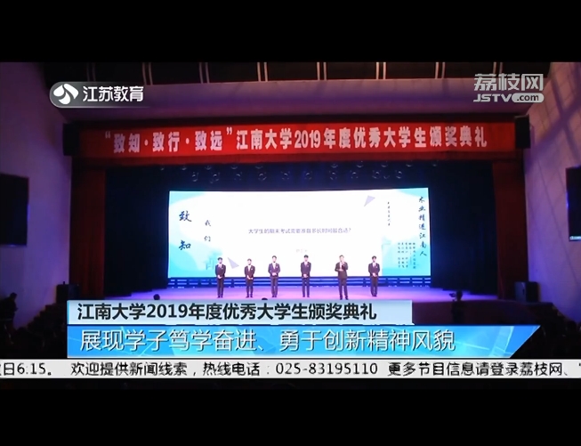 【江苏教育频道12月19日】12月18日晚,“致知·致行·致远”江南大学2019年度优秀大学生颁奖典礼在文浩馆观众厅隆重举行。12月27日,江苏教育频道《江苏教育新闻》栏目,以“江南大学2019年度优秀大学生颁奖典礼 展现学子笃学奋进、勇于创新精神风貌”为题,对此进行了报道。以下为视频截图:
