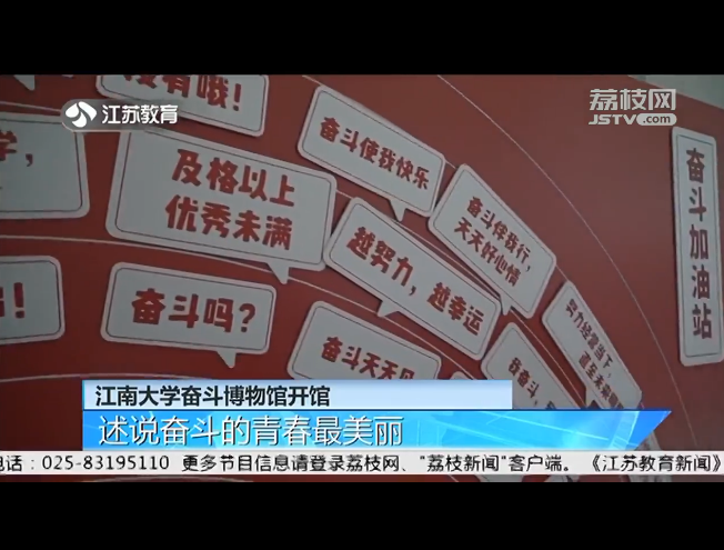 1月15日,江苏教育频道《江苏教育新闻》栏目,以“江南大学奋斗博物馆开馆 述说奋斗的青春最美丽”为题,对此进行了报道。