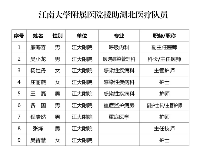 团圆之际,他们挺身而出,驰援湖北!危急时刻,他们以身涉险,逆风而行!江南大学已陆续派出9位医护人员,驰援武汉!