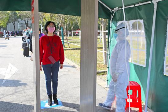 【新浪3月21日】“同学,你的手续已办完,欢迎返校!”伴随着现场工作人员的一句亲切问候,“返校”的学生完成了开学报到的一系列手续,拉着行李箱步入小黄车等待区,在志愿者的引导下有序上车前往宿舍园区。