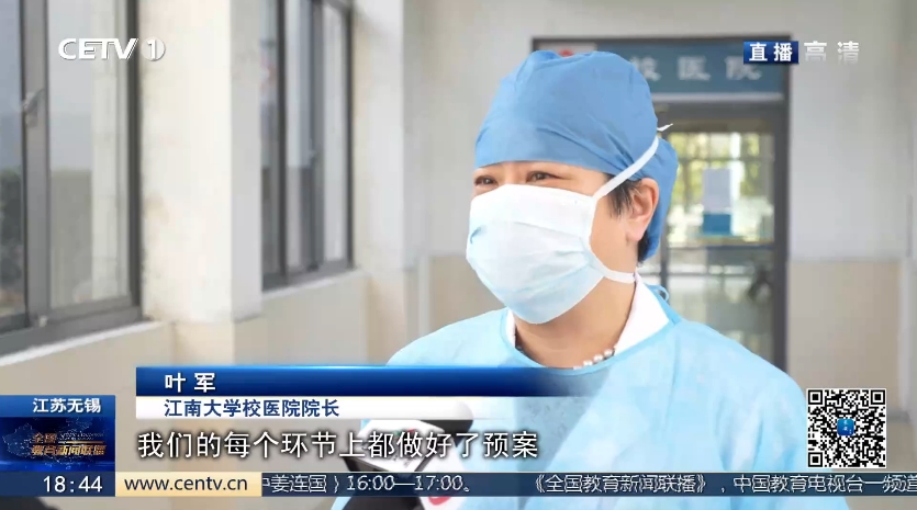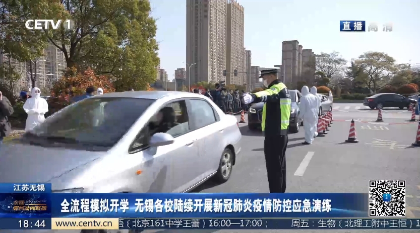 【中国教育电视台3月25日】近日,我校开展了疫情防控应急演练,用实际行动为师生撑起“保护伞”。3月25日,中国教育电视台《全国教育新闻联播》栏目,以“全流程模拟开学 无锡各校陆续开展新冠肺炎疫情防控应急演练”对此进行了报道,以下为视频截图: