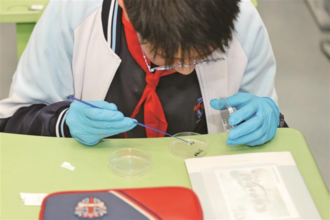 现场,2023年“江苏省优秀共青团员”余杨青分享了自己的成长经历,给入团积极分子带来一堂别开生面的主题团课。她鼓励青年学子善于实践、勇于创新,发酵自己的梦想。博士研究生孙驰翔作了题为《合成生物学与荧光蛋白》的报告。现场,辅成实验学校学生还体验了平板菌落绘图,感受科学与艺术的融合。