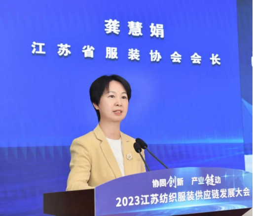 江苏省服装协会会长龚慧娟通报了今年1-9月全省纺织服装行业经济运行情况。她指出,今年以来,随着经济社会全面恢复常态化运行,宏观政策显效发力,国民经济回升向好,但当前世界经济增速放缓,纺织服装面临的外部环境仍然严峻复杂,尤其是外部需求持续低迷对纺织服装出口影响较大,江苏省纺织服装行业经济运行呈现内销增速放缓,生产、出口、效益、投资等主要指标降幅加深的态势。面对复杂严峻的外部环境,江苏省服装行业紧扣高质量发展的要求,持续推进结构调整和转型升级,加大发展动能转换,着力提升基础能力和产业链现代化水平,总体上看多数经济指标要好于全国,展现了江苏省服装行业的发展韧性。