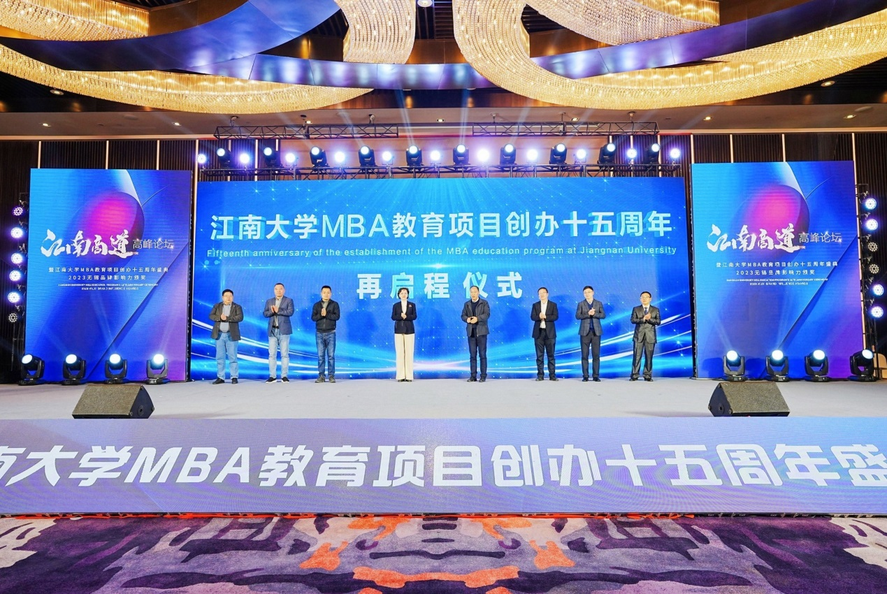本次江南大学MBA教育项目创办十五周年盛典同期发布了江南大学MBA十五周年宣传片《向未来出发》和《校友有话说》15周年特辑VCR,最后,全国MBA教育指导委员会秘书处王萍主任、江南大学党委常委、统战部部长朱飞、商学院党委书记刘长青、商学院院长浦徐进等师生校友代表为江南大学MBA15周年举行了“再启程”仪式。