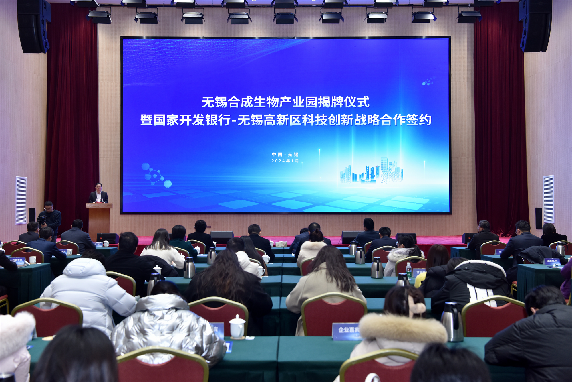 【中国高新网1月26日】1月24日,无锡合成生物产业园揭牌仪式暨国家开发银行-无锡高新区科技创新战略合作签约活动举行。中国工程院院士、江南大学原校长陈坚,国家开发银行江苏省分行副行长吴军,无锡高新区党工委书记、新吴区委书记崔荣国,江苏省药监局无锡检查分局局长、无锡市生物医药产业发展促进中心主任张亚君,区领导李芬、顾国栋、朱晓峰、孙磊出席活动。