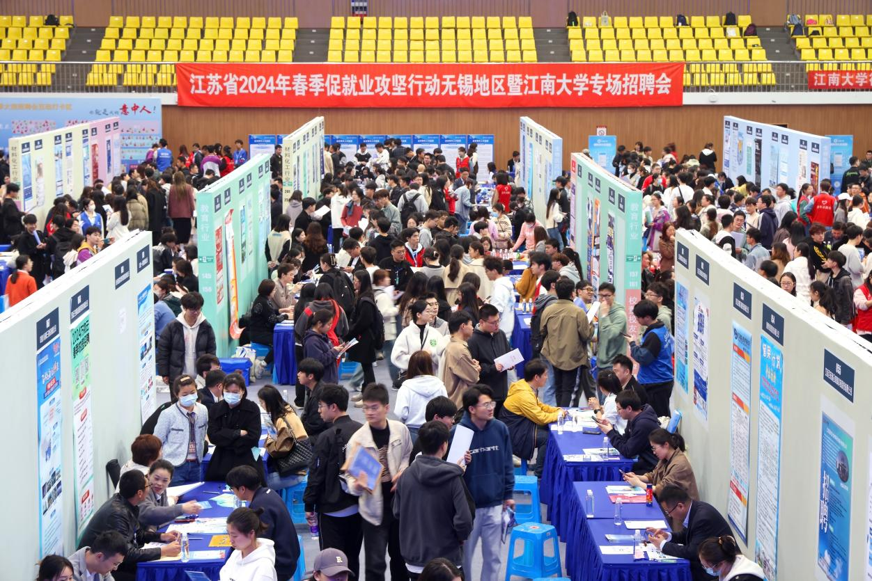 【交汇点3月24日】3月23日,江苏省2024年春季促就业攻坚行动无锡地区暨江南大学专场招聘会如期举行。国联证券、雅迪科技、伊利集团、百事中国、无锡超算中心等近300家省内外企业带来了1万余个就业岗位前来招贤纳才,求职的毕业生们也准备好自己的简历与作品,与企业深入交流。