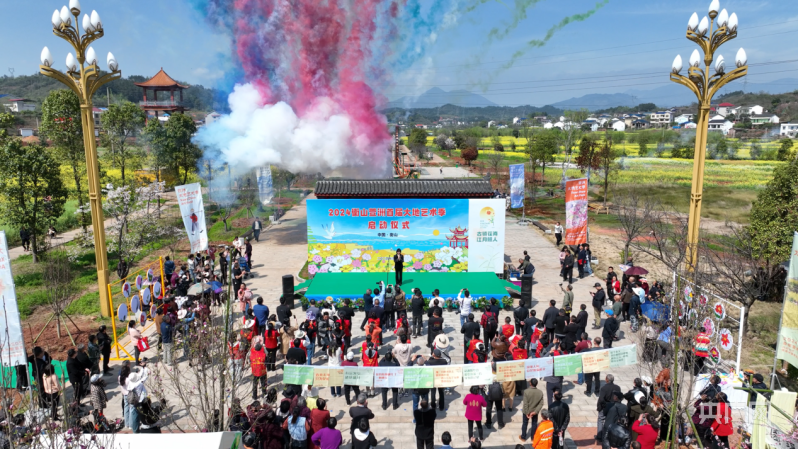 【央广网3月27日】仲春的萱洲,粉红的桃花、雪白的李花、紫色的野花、金黄的菜花……生成一幅天然的美景图,深入其中品尝大自然的馈赠,让人流连忘返。3月26日,衡山萱洲首届大地艺术季启动仪式在湖南省衡阳市衡山县萱洲镇举行。